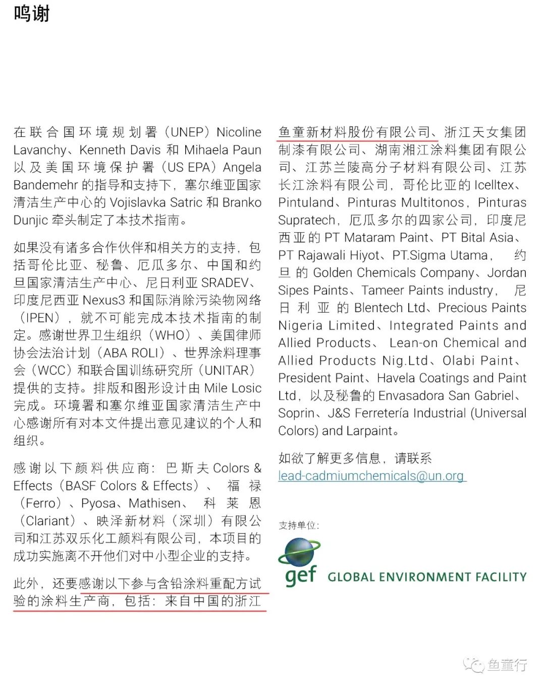 由聯合國環境規劃署 (UNEP)與全球環境基金牽頭,中國環境科學研究院(國家清潔生產中心)承擔進行的中小型含鉛涂料生產企業技術試點項目,經過兩年多的努力,項目成果之一《含鉛涂料重配方技術指南》在聯合國環境規劃署官網上正式發布了。浙江魚童新材料股份有限公司作為船舶涂料試點企業,參與的各項工作得到聯合國環境規劃署的高度認可,在聯合國出版物中得到了官方感謝。