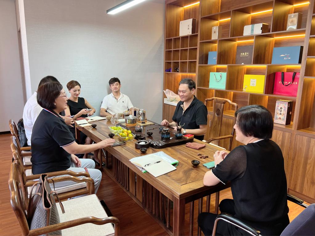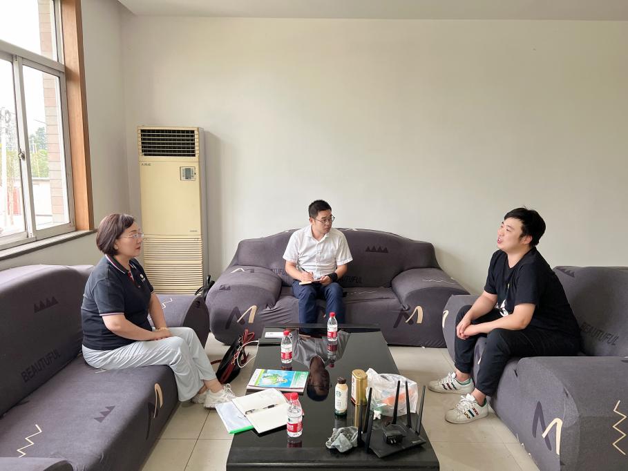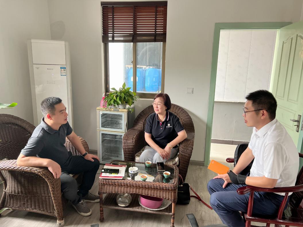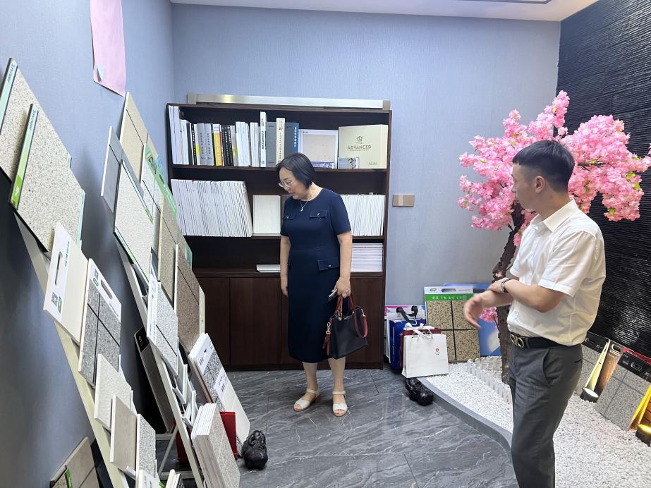 與余姚市鑫虹環保建材有限公司周縝負責人針對建筑涂料發展趨勢、企業如何保持可持續發展、用工問題等進行了交流