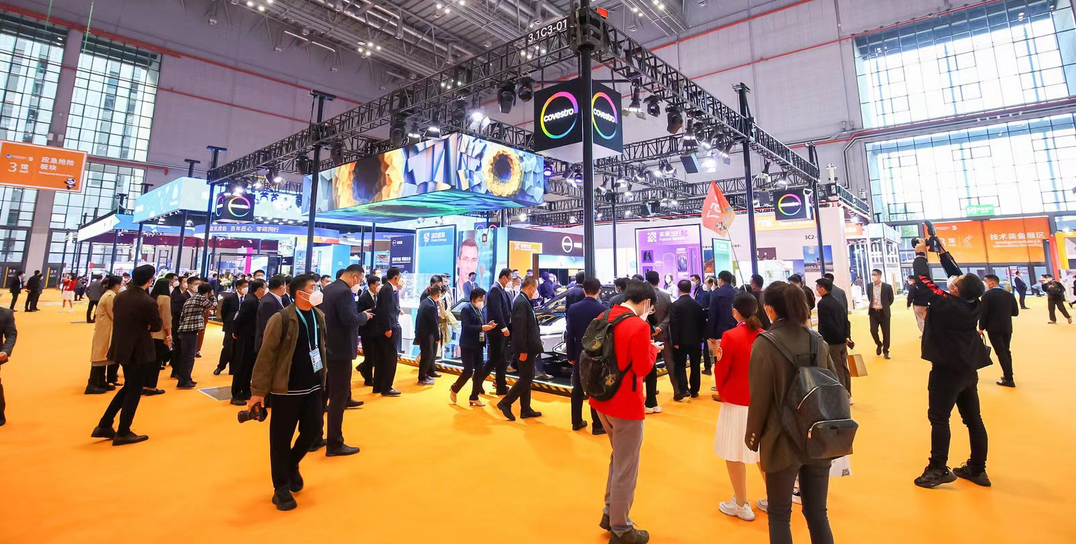 (圣奧低碳環保辦公桌在進博會科思創展臺展出,表面涂飾采用展辰新材與科思創共同打造的生物基水性UV技術)