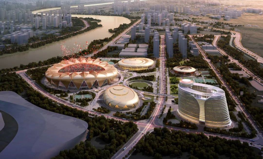 西安奧體中心是第十四屆全運會的主場館,由主體育場、體育館和游泳跳水館組成的,可提供高標準的專業比賽和演出場所,并為國內、國際賽事配備專業的田賽、競賽、足球訓練場和室內綜合訓練館。整個奧體中心以“絲路啟航 盛世之花”為主題設計。其中,體育場別名“長安花”,包含6萬個座位,起伏的屋面和立面構成舒展的體量和豐富的光影,啟發關于絲路的無限想象。