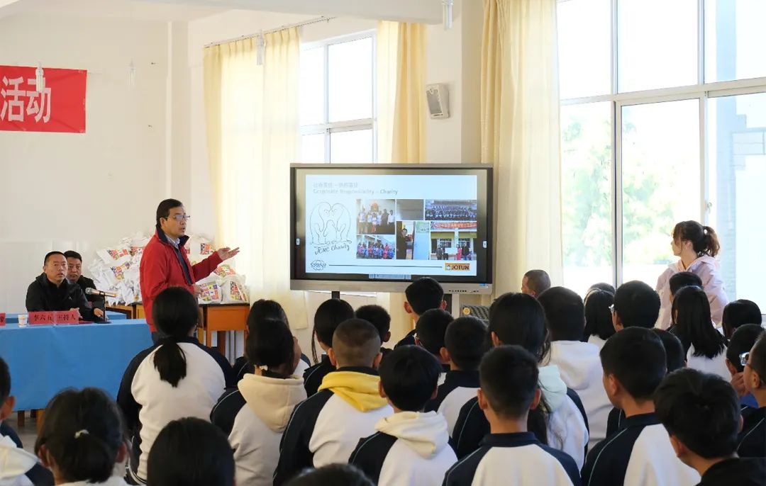 活動當天,中遠佐敦一行分別去往了鶴慶縣金墩初級中學及黃坪初級中學舉行了捐贈儀式。除學習生活用品外,東北亞IT經理戴鵬還代表公司捐贈了11臺筆記本電腦,為老師備課教學提供便利?;顒咏Y束后中遠佐敦代表們與春蕾班的老師同學們進行了親切友好的交流,鼓勵孩子們要繼續努力學習,勇敢面對困難,實現自己的人生理想。