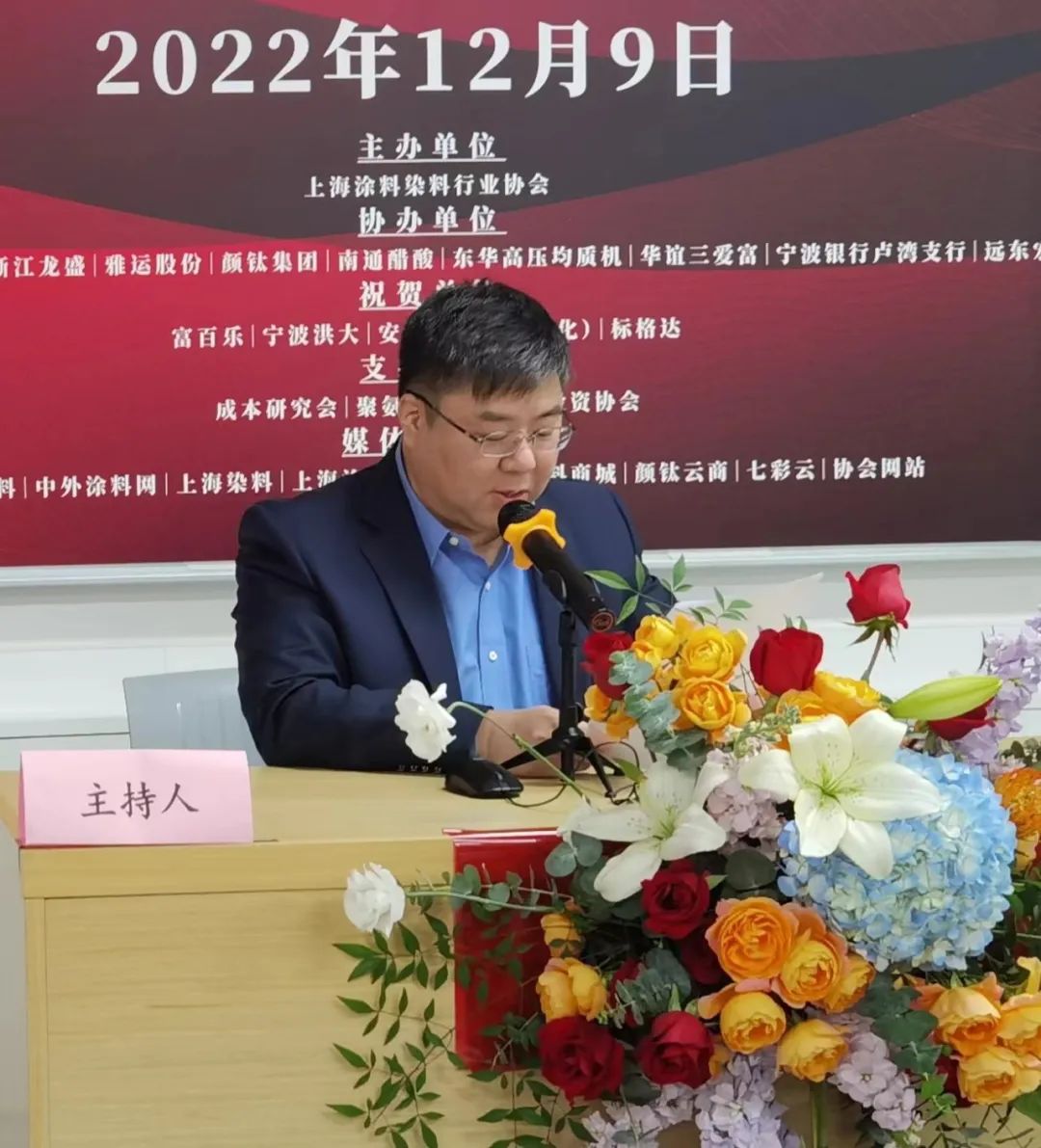 上海涂料染料行業(yè)協(xié)會秘書長張水鶴介紹出席會議主要嘉賓