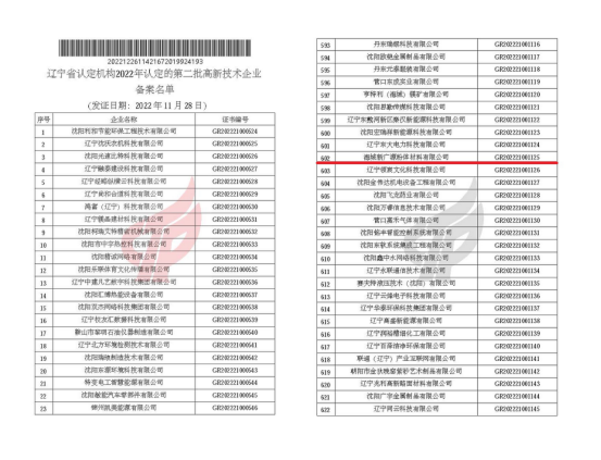 近日,全國高新技術企業認定管理工作領導小組辦公室公布了遼寧省第二批高新技術企業備案名單,廣源集團旗下遼寧海城新廣源粉體材料有限公司成功上榜。