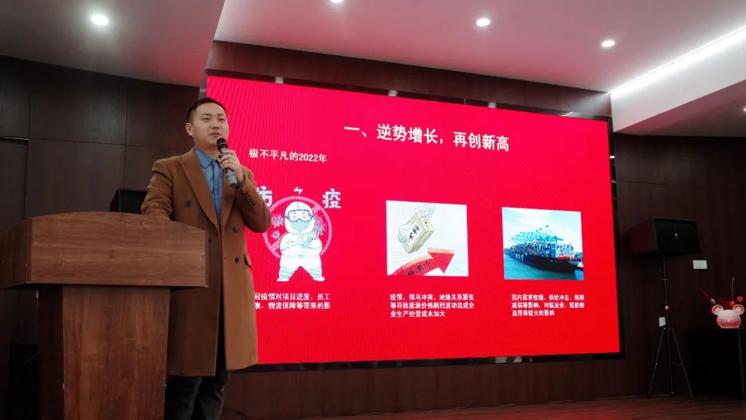 伴隨著熱烈的掌聲,魚童股份總經理曾超為全體員工帶來的精彩的講話。2022年對于魚童而言,是極不平凡的一年。疫情防控、原材料價格波動、國內需求收縮等對市場造成負面影響,魚童人積極進取,創新突破,實現了產銷量的逆勢增長,取得了值得自豪的業績突破。 在這辭舊迎新的時刻,曾總總結了魚童的競爭力與短板,也憧憬了魚童的未來。希望通過一系列變革,同所有魚童人一起打造成一個堅定以客戶為中心、擁有濃厚學習氛圍,敏捷進取的團隊,形成“魚您童行,為愛奮斗”的文化氛圍,實現魚童可持續健康發展。