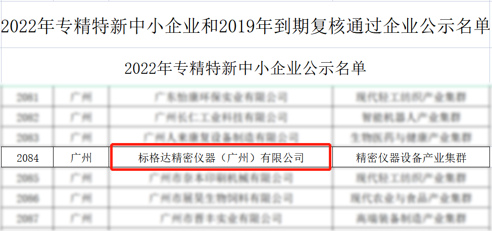 近日,標格達精密儀器(廣州)有限公司成功入選“專精特新”中小企業名單!