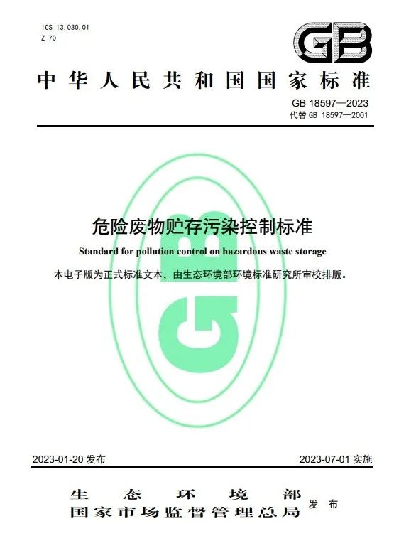 生態環境部發布《危險廢物貯存污染控制標準》(GB 18597—2023)(簡稱《貯存標準》),自2023年7月1日起實施,并替代GB 18597—2001。以下是生態環境部固體廢物與化學品司有關負責人針對《貯存標準》的專家解讀摘要。