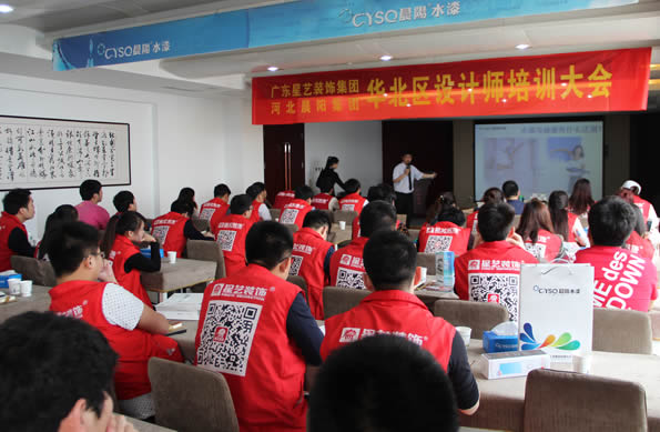 在隨后舉行的培訓會上,晨陽水漆黨委書記、常務副總裁劉占川與星藝裝飾集團的設計師們進行了詳細的溝通交流并致歡迎詞。培訓部技術講師范凱對天然凈味防霉、竹炭、荷葉及木器漆等產品進行了講解。