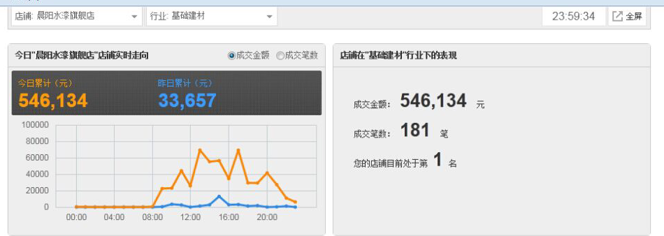 5月6日,正值晨陽集團17周年慶之際,為答謝廣大消費者的厚愛,晨陽水漆開展了規模浩大的感恩回饋活動。天貓晨陽水漆旗艦店單店日銷售額近55萬元;而天貓網絡平臺當日銷售額突破百萬,是當日天貓涂料品類銷售額第一名,同時創下天貓有史以來民族涂料品牌理想戰績,這預示著民族涂料品牌的“逆襲”之戰已經開啟。