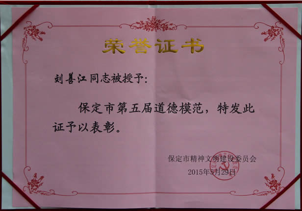 近日,保定市第五屆道德模范評選揭曉,晨陽水漆董事長劉善江榜上有名,被授予“誠實守信模范”。