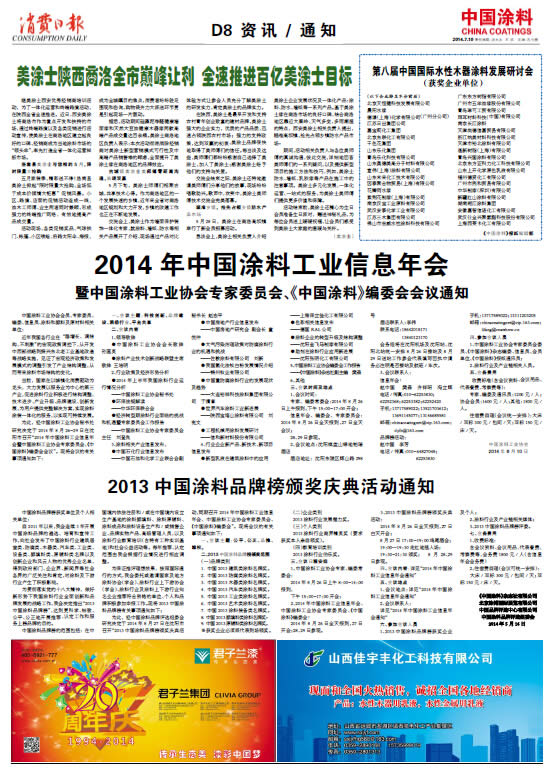 2014年中國涂料工業(yè)信息年會暨中國涂料工業(yè)協(xié)會專家委員會、《中國涂料》編委會會議通知