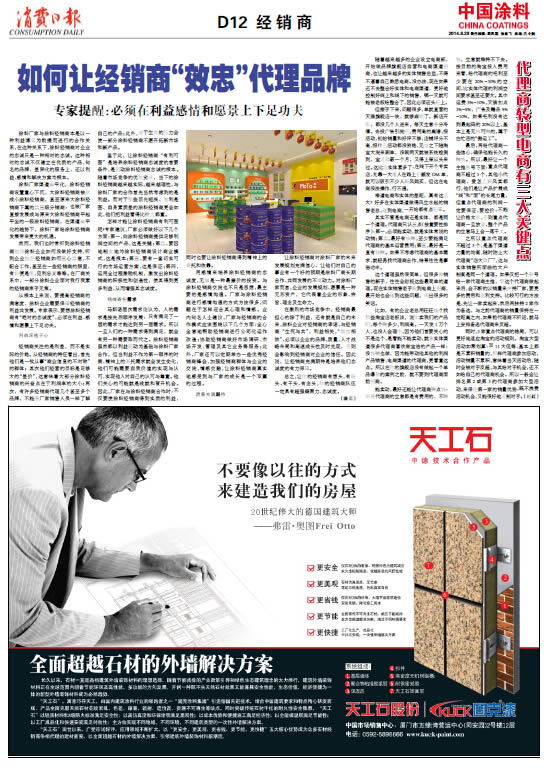 《中國涂料報》(電子版)的一切內容(包括但不限于文字、圖片、PDF、圖表、標志、標識、商標、版面設計、專欄目錄與名稱、內容分類標準以及為讀者提供的任何信息)僅供中國涂料信息網讀者閱讀、學習研究使用,未經中國涂料雜志社有限公司及/或相關權利人書面授權,任何單位及個人不得將《中國涂料報》(電子版)所登載、發布的內容用于商業性目的,包括但不限于轉載、復制、發行、制作光盤、數據庫、觸摸展示等行為方式,或將之在非本站所屬的服務器上作鏡像。否則,中國涂料雜志社有限公司將采取包括但不限于網上公示、向有關部門舉報、訴訟等一切合法手段,追究侵權者的法律責任。