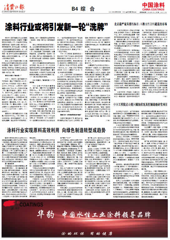 《中國涂料報》(電子版)的一切內容(包括但不限于文字、圖片、PDF、圖表、標志、標識、商標、版面設計、專欄目錄與名稱、內容分類標準以及為讀者提供的任何信息)僅供中國涂料信息網讀者閱讀、學習研究使用,未經中國涂料雜志社有限公司及/或相關權利人書面授權,任何單位及個人不得將《中國涂料報》(電子版)所登載、發布的內容用于商業性目的,包括但不限于轉載、復制、發行、制作光盤、數據庫、觸摸展示等行為方式,或將之在非本站所屬的服務器上作鏡像。否則,中國涂料雜志社有限公司將采取包括但不限于網上公示、向有關部門舉報、訴訟等一切合法手段,追究侵權者的法律責任。