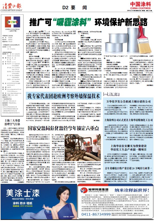 《中國涂料報》(電子版)的一切內容(包括但不限于文字、圖片、PDF、圖表、標志、標識、商標、版面設計、專欄目錄與名稱、內容分類標準以及為讀者提供的任何信息)僅供中國涂料信息網讀者閱讀、學習研究使用,未經中國涂料雜志社有限公司及/或相關權利人書面授權,任何單位及個人不得將《中國涂料報》(電子版)所登載、發布的內容用于商業性目的,包括但不限于轉載、復制、發行、制作光盤、數據庫、觸摸展示等行為方式,或將之在非本站所屬的服務器上作鏡像。否則,中國涂料雜志社有限公司將采取包括但不限于網上公示、向有關部門舉報、訴訟等一切合法手段,追究侵權者的法律責任。