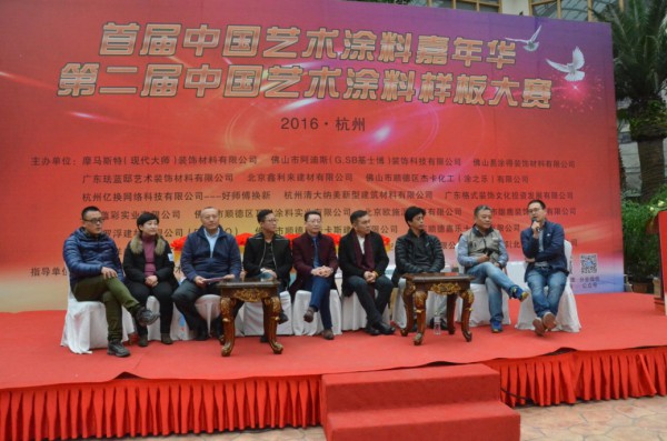 另外,2016藝術涂料嘉年華活動的一大亮點為中國藝術涂料樣板大賽的成功舉辦。本次樣板大賽共收到超過30家企業的107塊樣板。所有參賽選手使用大會提供的統一空白樣板,評分方式分為薄肌理和厚肌理兩大類,通過網絡觀眾投票、現場觀眾投票及專家打分,對樣板的美觀清潔度、創新性、可復制性等進行打分,得分加權后依次評出本次樣板大賽的金工匠獎、最佳創新獎及最佳人氣獎。本次評委會主席為佛山易涂得裝飾材料有限公司吳振江,評委為上海霹靂藝術裝飾有限公司薛大緯、上海傲展建筑裝飾工程有限公司王英、北京商品思源裝飾藝術有限公司吳清濤、鄭州天衣涂藝涂裝材料公司柴玉輝、杭州清大納美新型建筑材料有限公司常朝暉、順德杰卡化工有限公司汪松青、佛山市順德區好樂涂建材科技有限公司尹可、金華市煥藍設彩裝飾材料公司張慶兒。